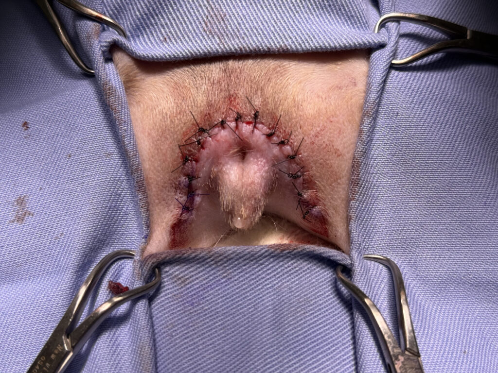 会陰部の余分な皮膚を切除し、陰門部が露出するように縫合していきました。術後、陰部を気にする様子はなくなり快適にすごせるようになりました。